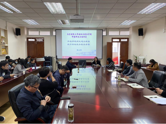 11月22日下午,应体育博彩 的邀请,校关工委五老讲师团成员张从军教授为学院教师作题为夯实师德师风建设根基,提升财政税务教学质量“初心讲堂”·师德师风专题讲座,张从军教授是财大二级教授、博士生导师及江苏省教学名师,并享受国务院特殊津贴,讲座安排在仙林校区德经楼408会议室举行。讲座由院党委陈苏书记主持,李婧副教授等老师与张教授进行了互动交流