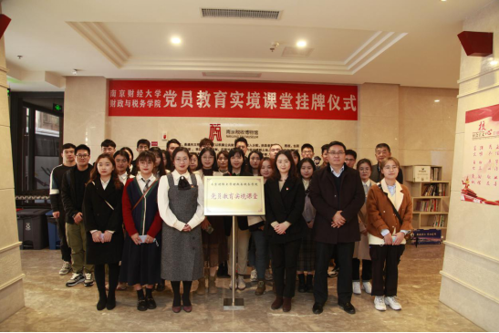 “党员教育实境课堂”挂牌仪式,院党委书记陈苏、院长朱军与南京税收博物馆馆长江晓彤共同为“党员教育实境课堂”揭牌。