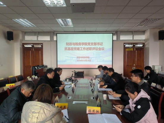 财政系党支部、税务系党支部、行政党支部、本科生第一党支部、本科生第二党支部、研究生党支部6个基层党支部书记参与述职评议,参评党支部书记对照述职评议考核主要内容,全面总结2024年抓党建工作情况,以履行职责情况为主,实事求是总结支部工作的成绩和经验、分析存在问题及原因、提出下一步工作思路和打算。