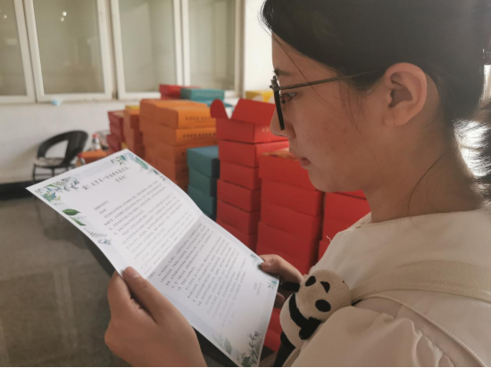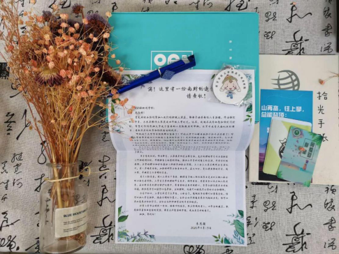 在报到现场,新生何羿锋抽到了学院精心准备的便签本和印有“财税青年,当以身作则,成中流之砥柱”的书签,他说:“生活就像一盒巧克力,我们永远不知道将得到什么。而这份新颖的盲盒让我感到了惊喜!书签上的这句寄语让我对这个专业有了新的认识。”值得一提的是,盲盒中的信件是使用可再生纸张进行书写,部分迎新用的道具也是来源于过去几年的库存,循环利用,在给新生们传递温暖的同时,响应节约资源,保护环境的号召。