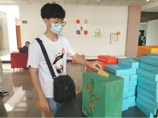 在迎新现场,每个新生在办理完报到手续后,都从包里取出了一封写给自己的信,郑重地投到“时光邮筒”里。你对即将开启的这段青春有怎样的期待?你对未来的自己有什么嘱托?这是学院暑假里就布置给新生的作业,新生们提前写好给大学四年后毕业的自己的一封信,报到时亲自将信件投入精心设计的“时光邮筒”之中,为自己的大学四年负责,做好规划。两百多封信件将由体育博彩 代为保存,静候四年后的开启。