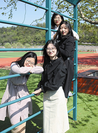 大部分人进入大学后都是第一次过集体生活,由于每个人的作息时间、喜好等各不相同,所以一般来说,摩擦在所难免。“四朵金花”分别来自南通、盐城、苏州和宿迁,地域差异不大,且在高中时都是理科生,入学后被分到一个寝室时就定下了宿舍第一条规定,那就是“绝不内耗”。“我们都比较粗线条,有什么说什么。”朱雨萱说,“四年来我们相处得很融洽,遇到什么事就摊开了说,很快都解决了。”回忆起四个人刚入学时的磨合阶段,她们都表示,其实也没什么特别的,互相体谅、彼此包容就好。