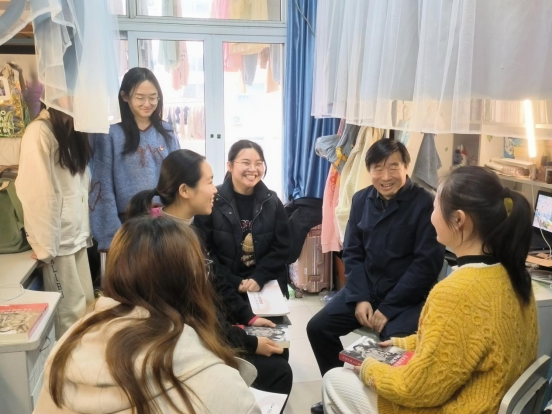 在学生宿舍,黄建元总会计师与同学们面对面交流,详细了解同学们的学习和生活情况以及对学校、学院发展与建设的意见和建议,耐心解答了同学们提出的各种问题。黄建元总会计师亲切询问了疫情防控期间同学们校园学习生活的需求和困难,对同学们能够积极配合学校疫情防控工作表示肯定和感谢。他还详细询问了食堂饭菜质量与价格等变化情况,仔细查看了宿舍用电与冬季空调使用。提醒同学们要注意用电安全,做好个人防护。他嘱咐同学们要尽快调整好期末学习状态,以良好的精神面貌投入到复习考试之中。