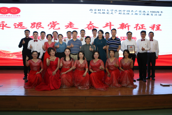 15名教职工激情演唱了《不忘初心》这首歌曲,在歌声中感悟信仰力量,在“财政助民生,税收家国情”的呐喊中牢记育人使命,深植财税人才培养,传承红色基因,齐声高歌心中对党的热爱,赢得了评委们的高度肯定和现场观众的热烈掌声,最终以优异的成绩获得了一等奖。