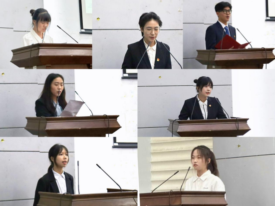 随后,经过层层选拔的7名学子以PPT分享的形式进行5分钟的个人风采展示,候选人在学业水平、社团活动、实践成果及科研创新等方面所取得的成绩给现场新生带来了极大的反响和震撼,“学霸”“卷王”等感叹词在现场不绝于耳,选手的精彩演讲不时赢得现场观众的阵阵喝彩与掌声。