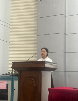 2023级新生奖学金获得者裴思彤同学作为新生代表上台发言,号召大家把大学当作新的起点,搏击风雨,触碰彩虹。