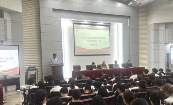 学院党委书记陈苏老师以“立足脚下,放眼未来”为题,希望同学们秉持求真务实的理念,在大学期间练就实干本领,做德才并重,情理兼修的高素质财税专业人才陈书记对同学们提出三点希望,首先希望大家加强个人学业生活规划,凡事早谋划、早行动;其次要加强自我管理,提高学习能力,拒绝诱惑,提高自制力;三是要合理制定计划,学会独立思考问题,构建自主学习的体系。最后,陈书记要求同学们认真学习中国共产党的百年奋斗历程和辉煌成就,积极向党组织靠拢,同学们树立正确价值观、人生观,做勇于担当民族复兴大任的时代新人