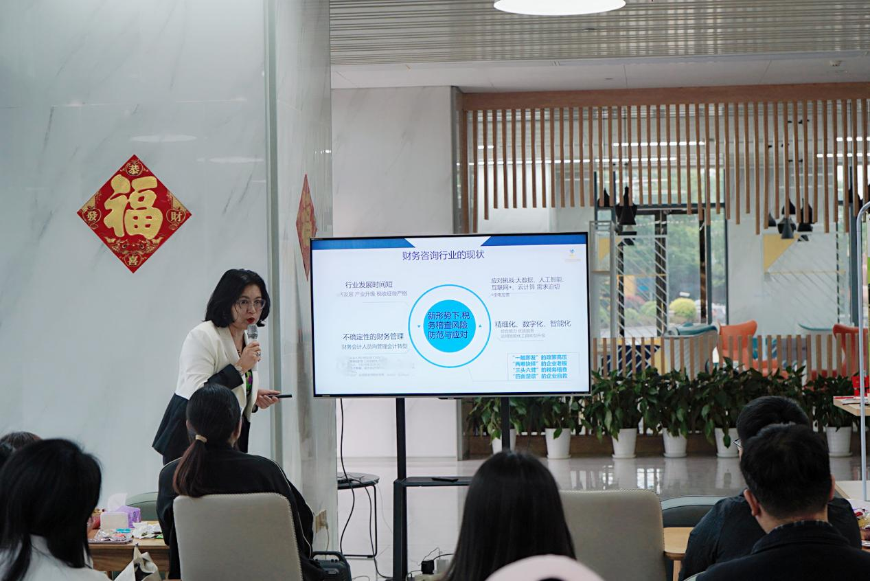参观结束后,同学们集中观看了江宁区创新创业宣传片,百盛财务创始人王慧为同学们做了《财税咨询行业的现状及职场小白入职的那些事》主题分享,她介绍了财税行业的现状,行业未来发展状况和职场小白进入财税咨询行业之后能获得的职场上的十八般武艺。让学生们更好地了解了现在的就业情况,为同学们提供了一场实用性极强的就业指导。