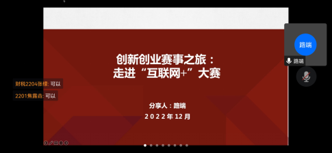 为做好学校第九届“互联网+”大学生创新创业大赛暨省赛选拔赛备赛准备工作,加强师生联动,强化创新创业能力训练,增强高校学生的创新能力和在创新基础上的创业能力,培养国家建设需要的适应性创新型高水平人才。12月6日下午2点我院举办了“互联网+”创新创业专题线上讲座。本次活动邀请了南京大学路端老师为大家讲解,并给予同学们关于创赛方面的建议。讲座由体育博彩