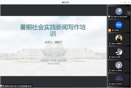 7月8日晚,《扬子晚报》资深媒体人杨甜子进行暑期社会实践新闻写作专题培训。杨甜子以具体的新闻稿件为例,从新闻点的选取、新闻稿件的写法、新闻素材的准备等角度,和同学们分享了她从业以来的心得体会。杨甜子表示,借力社会热点,选择合适的角度与之靠近,挖掘稿件的新闻点,才能写出让人眼前一亮的作品。她以体育博彩