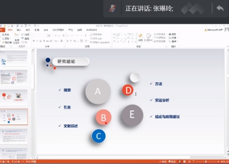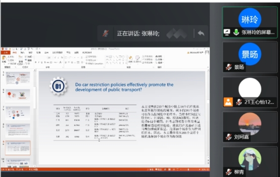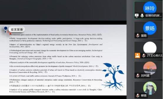 报告伊始,张琳玲老师以自己的研究方向——低碳交通为例,强调论文写作应以问题为导向,聚焦主要目的;其次,张老师梳理了科研论文写作的一般范式,并聚焦于硕士论文写作的几个常见问题:摘要重点不清晰、政策建议空泛、创新点不突出、阅读文献不足、实证不显著等,并结合自身体会,提出一系列的解决方法。其中,在实证方面,张老师强调文章重在分析,应深入思考其内在经济含义和逻辑起点,推进学理深度,不能只是简单描述结果;在最后的交流讨论环节,与会同学向张琳玲老师积极提问,就模型方法等进行了深入热烈的交流讨论。