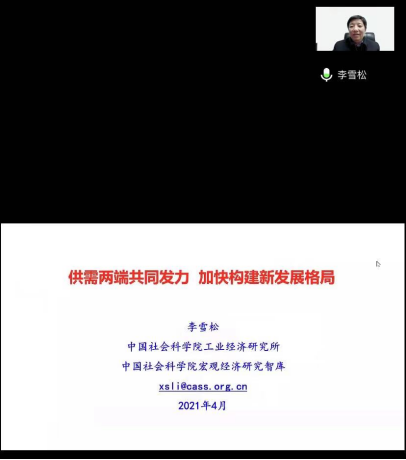 4月8日晚上7点,应我院、公共财政研究中心的邀请,中国社会科学院工业经济研究所党委书记、副所长、中国社会科学院大学博士生导师李雪松教授通过腾讯会议作了题为“供需两端共同发力,加快构建新发展格局”的线上学术报告。体育博彩