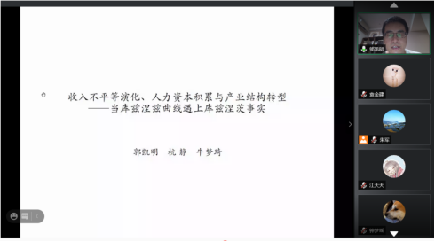 、公共财政研究中心邀请,中山大学岭南学院博士生导师郭凯明教授通过腾讯会议为学院师生做了题为“收入不平等演化、人力资源积累与产业结构转型——当库兹涅茨曲线遇上库兹涅茨事实”的学术讲座。讲座由学院院长、公共财政研究中心主任朱军教授主持,学院部分教师和研究生参加了讲座。