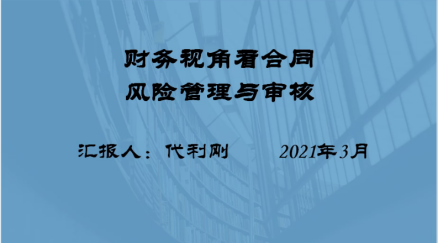 第二次税务行业前沿专题开课,本次课程的主题是财务视角看合同风险管理与审核,由代利刚老师进行汇报。