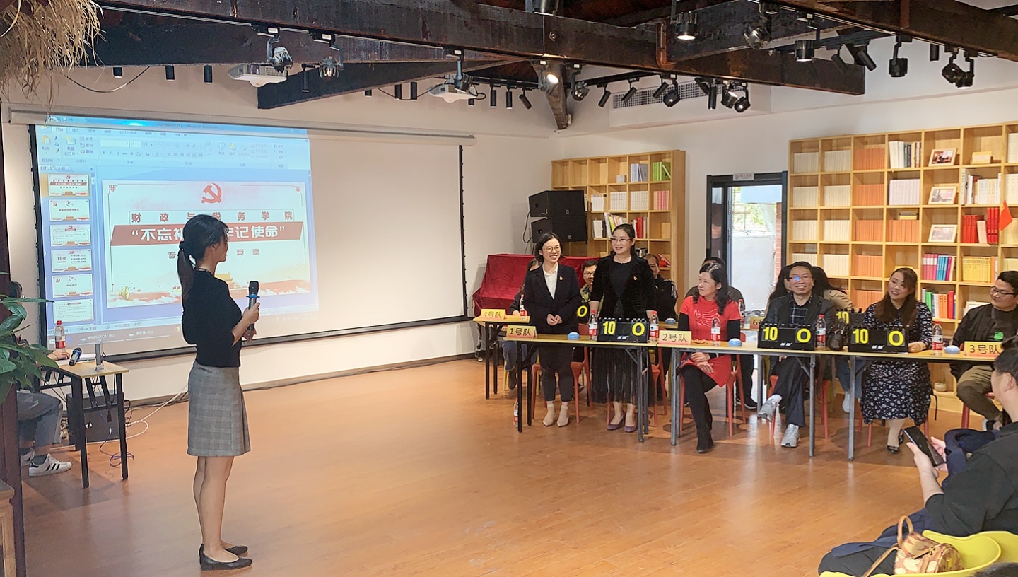 全体党员教职工于梅园新村街道小红梅党群服务中心开展“不忘初心、牢记使命”知识竞赛活动。财政系教工支部和税务系教工支部分别派出三支队伍参加比赛,全体党员教职工及部分群众代表观摩。
