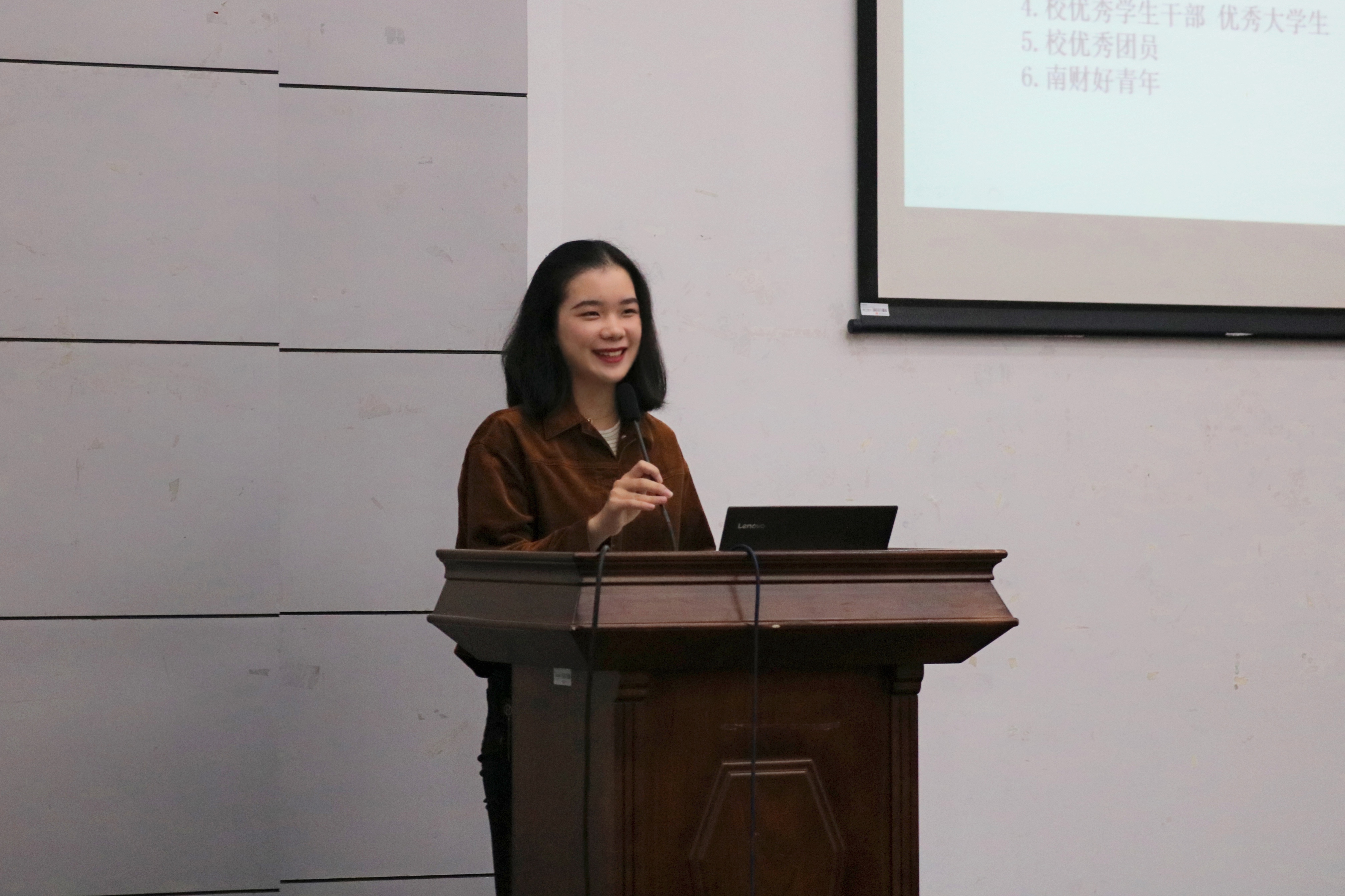 此次梦想公开课的主讲人不是老师,也不是学者,而是优秀的同学们,有超级学霸赵小旭、南财好青年杨璐遥、志愿服务达人赵菁、以及实践达人付依依、魏澜同学。说的也不是难懂枯燥的知识点,而是他们奋斗故事的闪光点。五位主讲人围绕如何心怀梦想、实现梦想现身说法,戳中大学生学习、生活痛点。“勇于质疑与学会取舍是提升自己的捷径”“学会沟通能使我们从容地去追求未来更好的自己”“每个人都是梦想家,不缺少追梦的激情,只是在实现梦想的道路上需要规划和指引。”现场干货满满、金句频出。