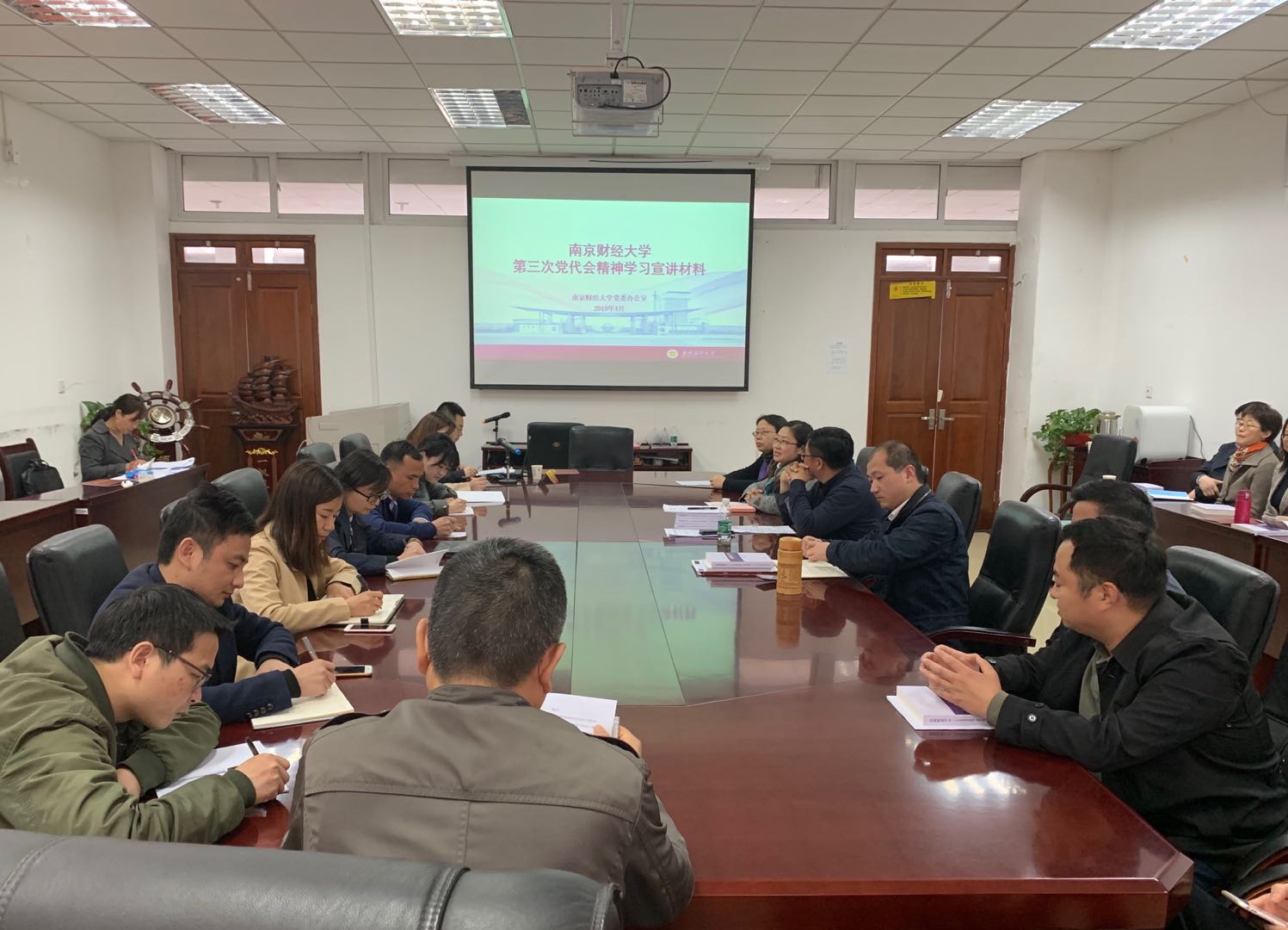 邀请校党委办公室、校长办公室、党委主体责任办公室副主任、校第三次党代会精神宣讲团成员郑锷宣讲了校第三次党代会精神。宣讲会在仙林校区德经楼408会议室举行,会议由院党委副书记李慕原主持。体育博彩