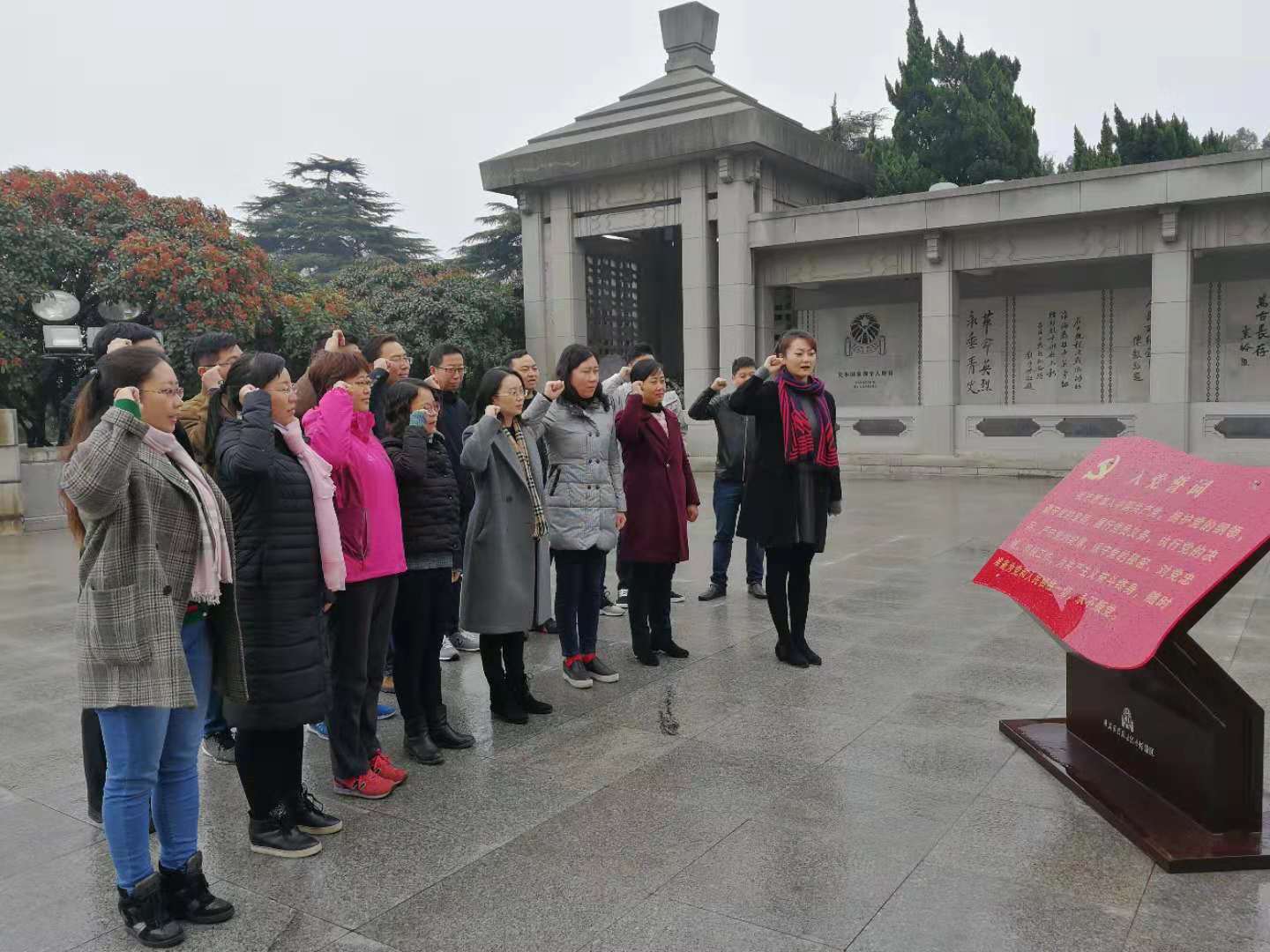 次日上午,同志们参观淮海战役烈士纪念陵园,缅怀先烈。全体党员面对淮海战役烈士纪念塔在中国共产党誓词墙前举行了庄严的重温入党誓词活动。随后参观了淮海战役纪念馆内数千件文物、照片和艺术作品,感受了烽火岁月的动人故事和红色精神的新时代光芒。大家纷纷表示,要像总书记所说,传承好人民军队的红色基因,在工作中继承和发扬淮海战役精神。要认真学习贯彻十九大精神,在实践中发挥党员教师应有的榜样作用,使党支部更具凝聚力、战斗力,以更加饱满的激情和更强的责任感投入到今后的工作中去。