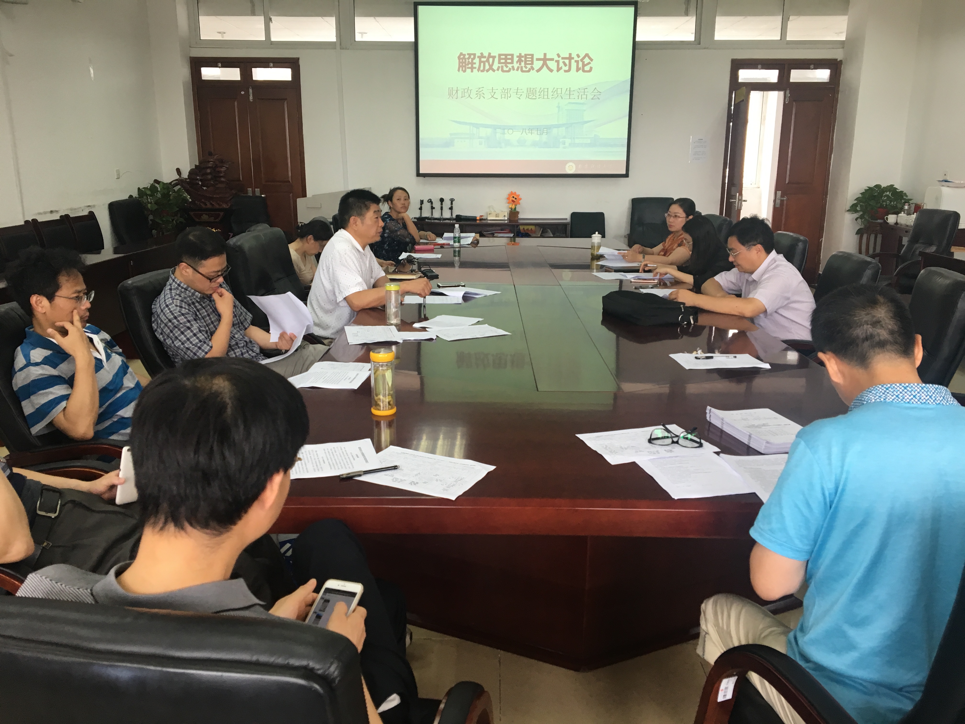 财政系党支部、税收系党支部在德经楼408会议室、税收系办公室分别召开关于“进一步解放思想,激励新时代新担当新作为”专题组织生活会暨专题学习会。全体院领导、全体党员教师参加了所属支部的组织生活会。