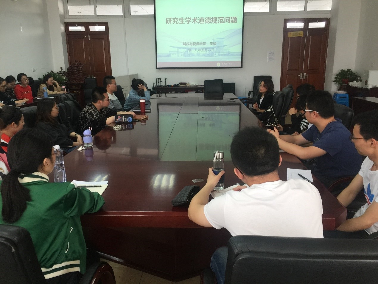 “研究生科技文化月”首场活动在院408会议室举行,财政系主任李婧副教授和学院一、二年级的全体研究生就学术道德与学术规范问题进行了深入的交流与探讨。