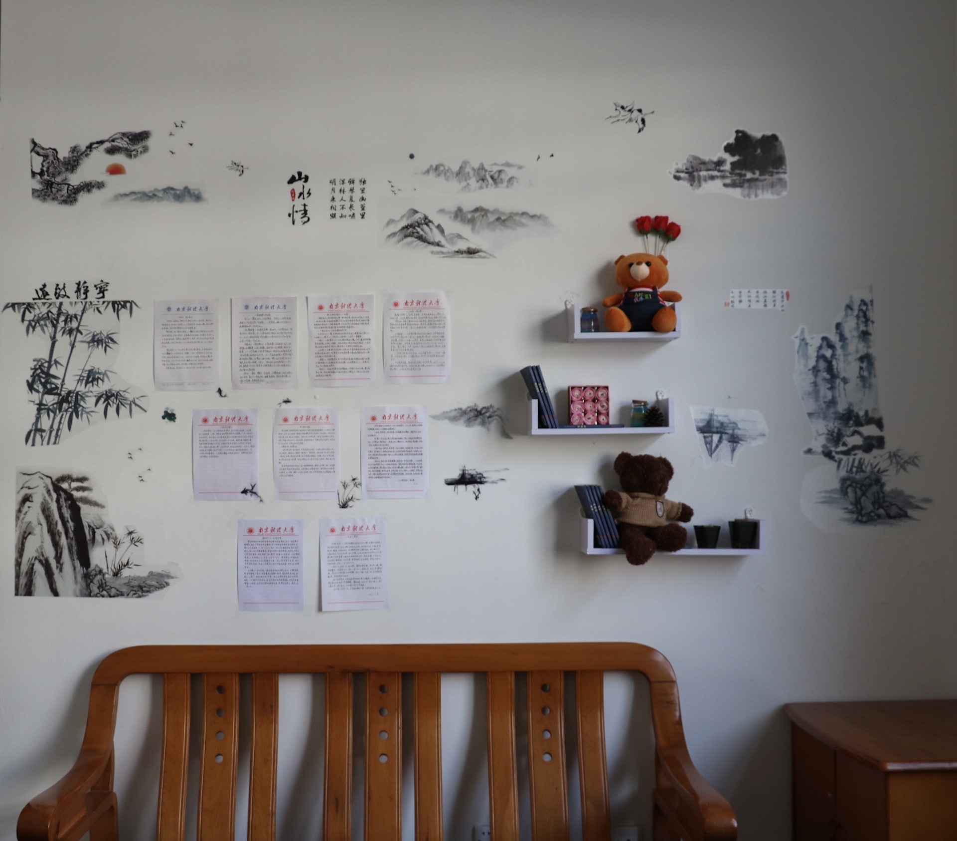 在2017级学生中开展“最美国学文化墙”评选活动。评选以寝室为单位,同学们根据自己在阅读国学经典中的感悟,通过描绘、布置寝室、书写感悟等方式呈现国学之美。