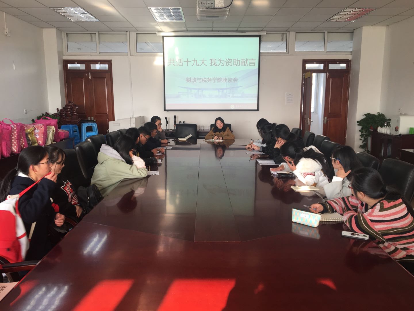 在德经楼408会议室召开“共话十九大我为资助献言”交流活动。院党委副书记陈苏、团委书记全真真以及学生代表参加。