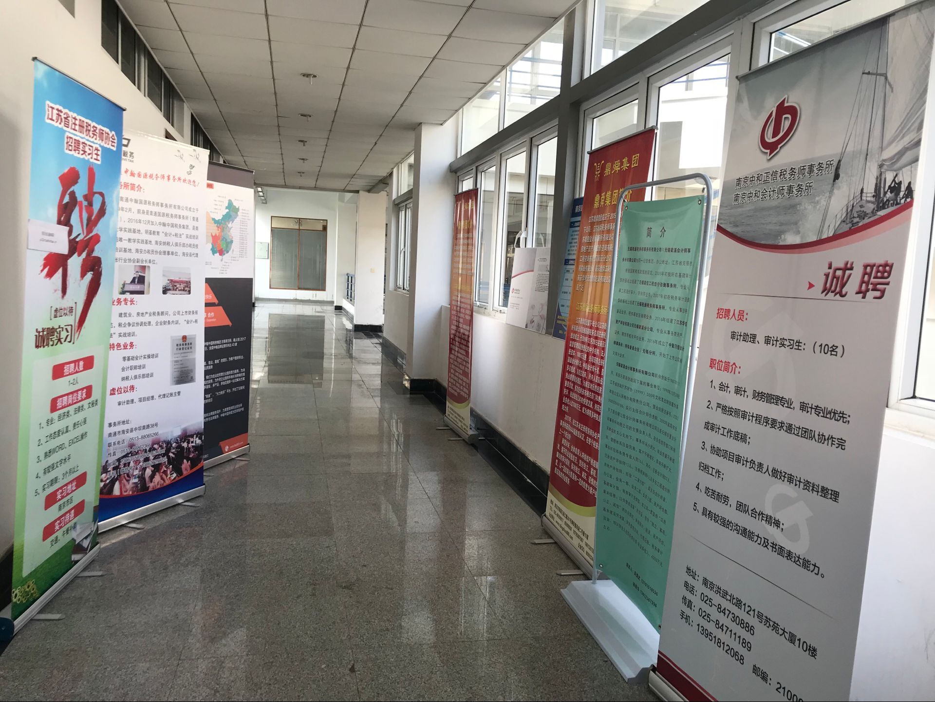 省注册税务师协会联合旗下会员单位如江苏国瑞兴光税务师事务所、南京中和正信税务师事务所、常州开瑞税务师事务所、江苏鼎舜税务师事务所、南京中和会计师事务所等省内知名税务师、会计师事务所前来参加,提供了税务咨询助理、会计税务专员、审计助理、金融、财务管理等多个就业及实习岗位计划。部分税务师事务所进行了专场宣讲。