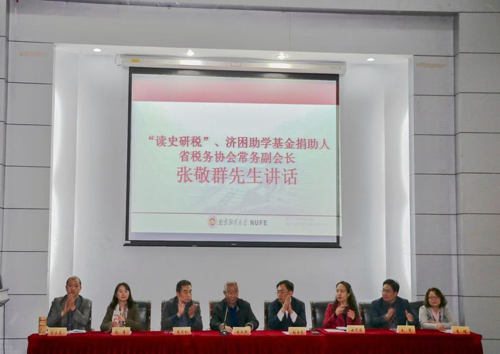 在德经楼双登学术报告厅举办了2017级本科生首次入学教育暨“读史研税,济困助学基金”颁奖仪式。江苏省税务学会常务副会长张敬群、副秘书长端传和、体育博彩