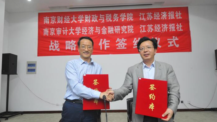 江苏经济报社主要负责人樊万朝表示,江苏经济报和南财大财税学院的合作将形成“舆论与理论同频共振”。江苏经济报将以媒体融合为龙头,发展融合创新工场、谋划新媒体产业园等。南财大体育博彩