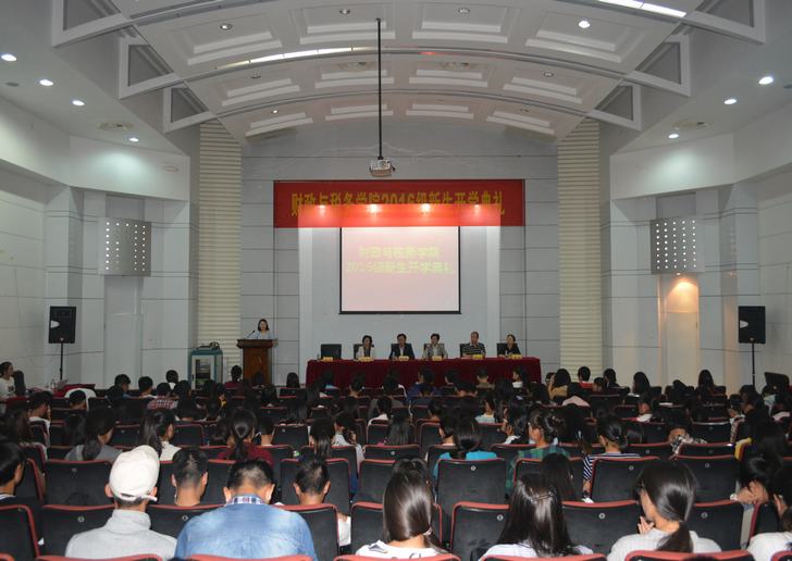 2016级新生开学典礼暨“财税学院精英人才培育奖学金”颁奖仪式在经济学科楼报告厅隆重举行。2016级全体大一新生参加了开学典礼。院长李林木、党委书记张金龙、党委副书记陈苏、副院长管永昊、院学术委员会主任蔡军、税务系主任程瑶、2016级辅导员李玲等出席。开学典礼由学院党委副书记陈苏主持。
