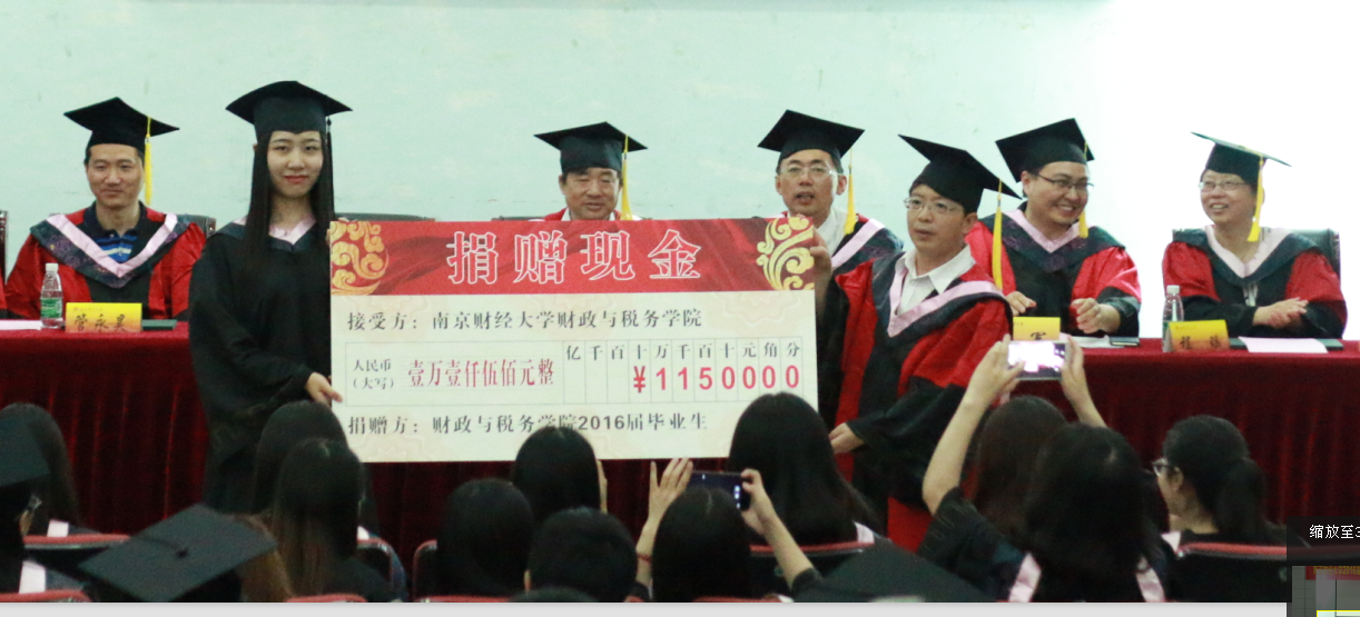 图6:2016届毕业生向学院“财税家园•梦想基金”捐赠11500元人民币