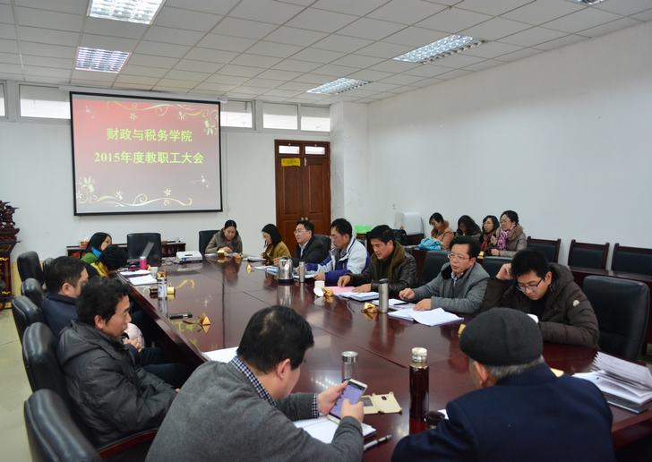 在408会议室召开2015年度教职工大会,学院全体领导、全院教职工参加会议。校工会副主席张耀光应邀参加会议。会议由学院党委书记张金龙主持,学院院长李林木作《2015年度体育博彩