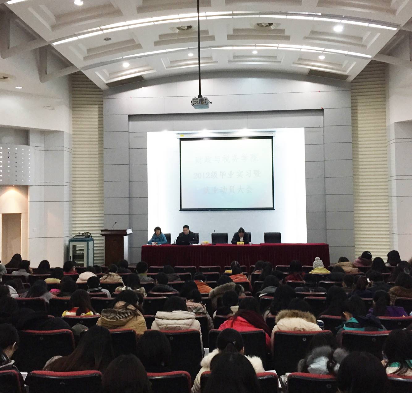 2012级本科生就业实习动员大会,朱军副院长和税务系主任程瑶教授出席了本次大会。大会由辅导员李玲主持。