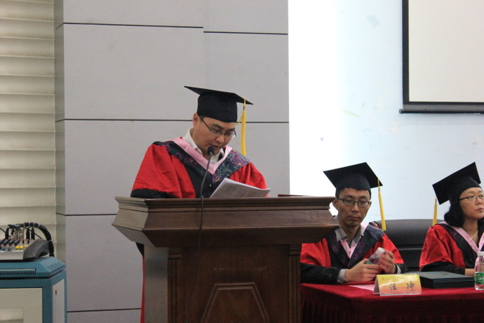 副院长黄斌教授致辞。他认为大学毕业走入社会是人生中一个十分重要的时刻,也是一段追求幸福的旅程。在这段旅程中希望同学们能不被物欲所困,而追求存在于分享、尊重和高层次人生价值中的幸福!做自己喜欢做的事,学会坚持,不轻易言弃。最后,黄院长将电影《致青春》中一句话作为结句送给毕业生:“这年华青涩逝去,却别有洞天。”